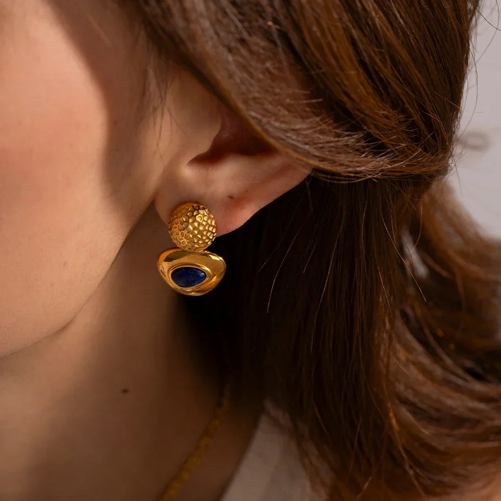 18k Hammered Geometric Triangle Lapis Earrings