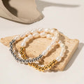 - Style: This bracelet features a striking split design with one half adorned in polished metal beads and the other half showcasing lustrous pearls. The contrasting textures create a harmonious balance between modernity and tradition, making it perfect for those who appreciate refined, statement-making jewelry.