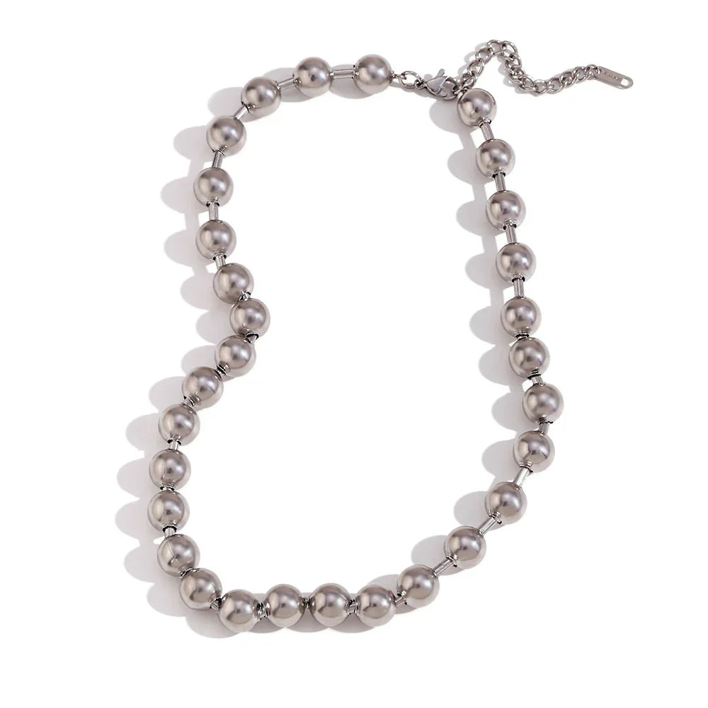 - Style: This beaded necklace features a distinctive chunky design, with solid cylinder accents placed between each bead for a structured and polished look. The balanced interplay between the beads and the cylinders creates a bold, sophisticated silhouette that adds depth to any outfit.