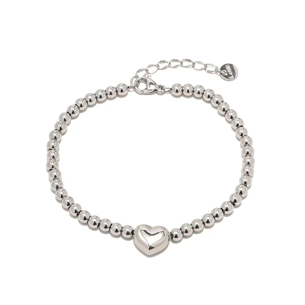 - Style: This beautifully designed bracelet features a string of meticulously crafted beads with a radiant heart pendant as its central element. The dainty heart pendant is slightly raised, allowing it to catch the light and draw attention to its sleek, polished surface. The combination of the refined beading and the minimalist heart charm creates a timeless and feminine design that’s ideal for any occasion. Whether worn solo for a subtle touch or stacked with other bracelets for a layered look, this piece is versatile and effortlessly chic.