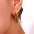 - Style: Inspired by NoahLi's heritage "V" design, these hoop earrings feature a unique V-shape, adding a modern twist to the classic hoop. The top is accented with 18k gold, while the bottom showcases a stunning stone design, creating a perfect balance of luxury and class. Available in three distinct colors—white, green, and brown—to suit any style preference.