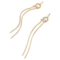 - Style: These earrings feature a delicate thin gold chain that forms a graceful circle at the top, with the chain elegantly draping down into a tassel design. The flowing tassel creates a sense of movement and fluidity, making these earrings a beautiful statement piece for any occasion. The stud backing ensures a secure and comfortable fit.