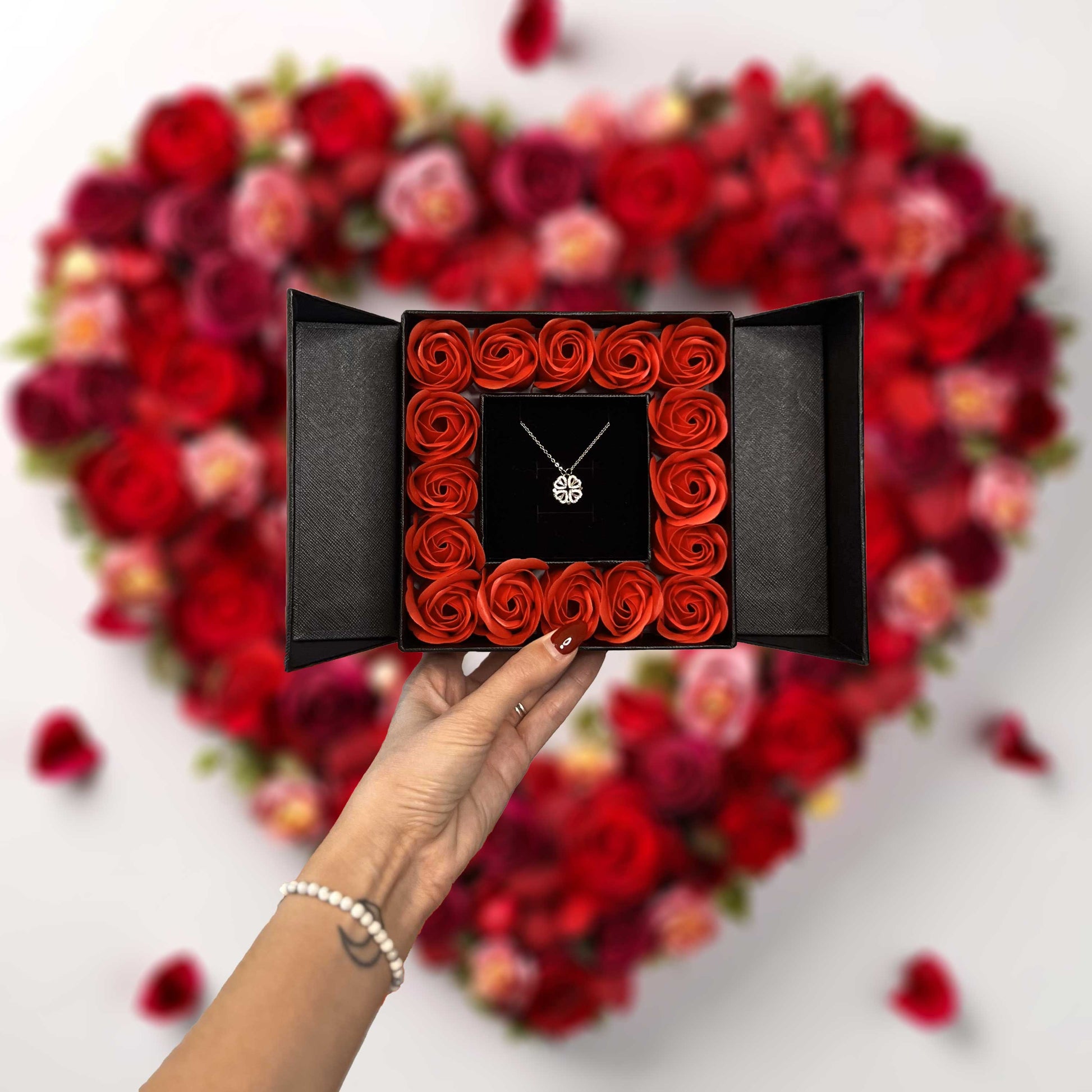 - Style: This necklace features a unique magnetic design that transforms between a four-leaf clover and a four-heart pattern. When closed, it forms a classic four-leaf clover, symbolizing luck and prosperity. When opened, the clover reveals a delicate arrangement of four hearts, representing eternal love and connection. Its dainty and sophisticated design makes it perfect for gifting or personal wear.