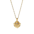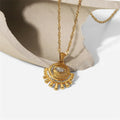 - Style: This delicate necklace features a unique half-split pendant design, blending the mystical elements of the sun and moon. The left half is adorned with a crescent moon, accented with a diamond for added sparkle, while the right half showcases a radiant sun motif. At the center, a captivating evil eye is embedded, surrounded by dazzling diamonds to create a protective yet elegant charm. This intricate blend of celestial and symbolic elements adds a refined allure, making it a standout piece.