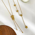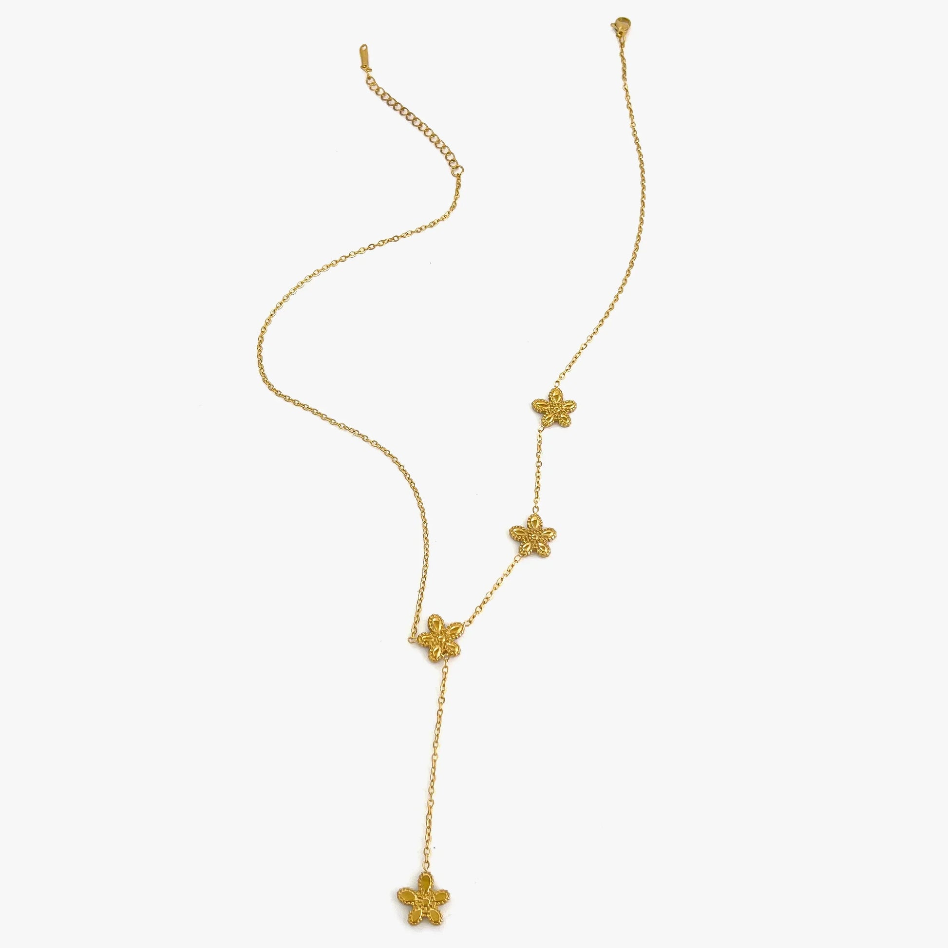 - Four-Flower Lariat Design: A lariat-style necklace with a cascading arrangement of four flowers that gradually taper down, leading to a final flower at the end of the tassel, adding dynamic movement and sophistication.