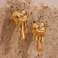 - Style: These stunning stud earrings feature a golden heart design that appears to be melting, creating a fluid and graceful effect. The minimalist design makes these earrings versatile for everyday wear, while the melting heart detail adds an artistic, contemporary flair.