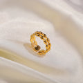 - Material: Meticulously crafted from 18k gold plated 316L stainless steel, this ring offers hypoallergenic properties, tarnish resistance, and enduring shine. The high-quality gold plating enhances its luxurious finish, ensuring it remains a timeless treasure in your collection.