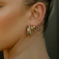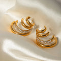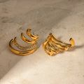 The 18k Quad Half Hoops Stud Earrings by Zyrah Jewels redefine elegance with a bold and intricate design that captures the illusion of multiple earrings in one sophisticated piece.