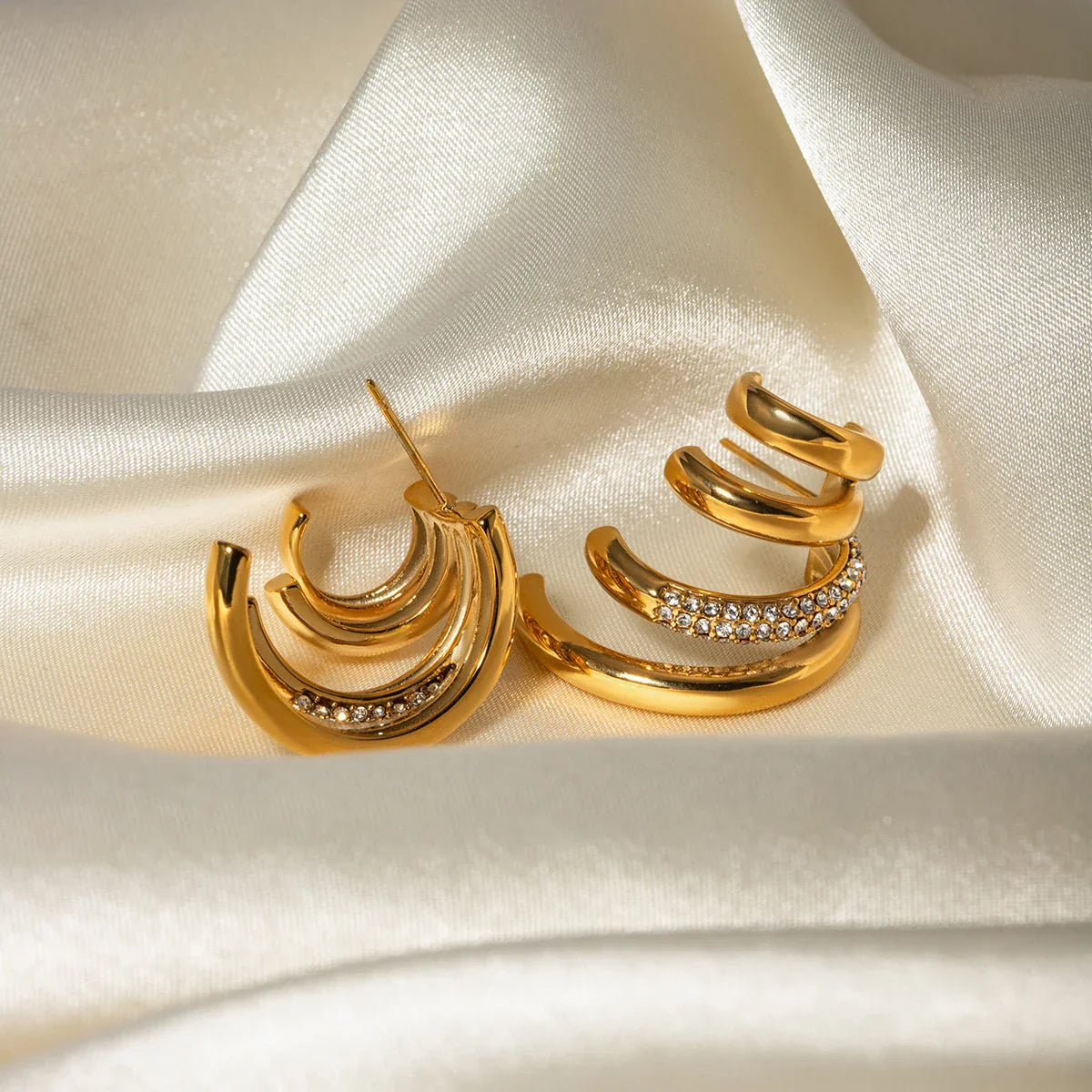 - Material: Fashioned from 18k gold plated 316L stainless steel, these earrings boast hypoallergenic properties, tarnish resistance, and long-lasting durability. The shimmering zircons on the third hoop add a touch of glamour, enhancing the visual appeal while maintaining a lightweight feel for comfortable, all-day wear.