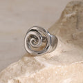 - Style: This thick band ring showcases a striking spiral outline design that draws the eye and exudes contemporary allure. The open spiral at the top creates a unique geometric silhouette, leaving parts unfilled to highlight negative space and add visual interest. The combination of bold lines and the airy spiral shape makes this piece a perfect blend of strength and elegance, making it an ideal accessory for those who love to express their individuality.