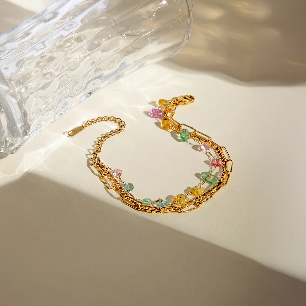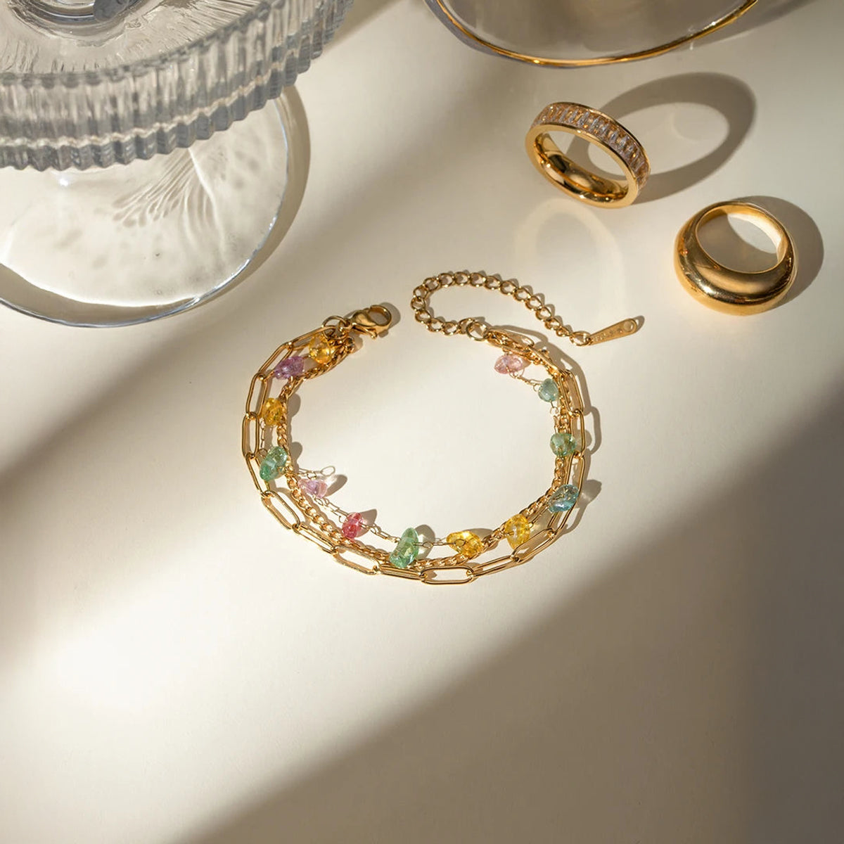 18k Stacked Curb, Paperclip, & Crystal Bracelet