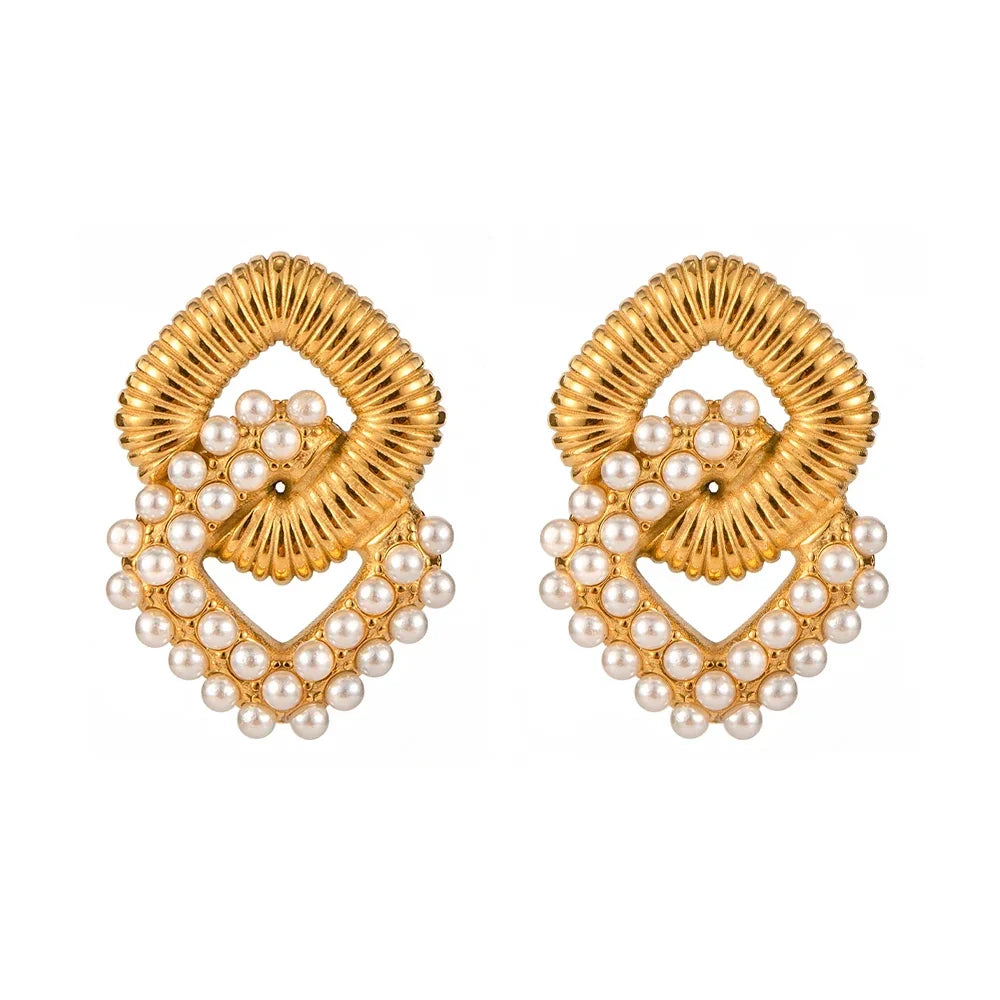 - Material: Made from high-quality 316L stainless steel with 18k gold plating, these earrings offer hypoallergenic wear, tarnish resistance, and a lasting luxurious finish. Accented with imitation pearls and sparkling zircons, each piece is crafted for enduring elegance.