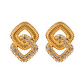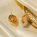 - Style: These exquisite stud earrings feature two layers of interlocking squircle shapes, offering a contemporary aesthetic. The top layer is adorned with a striped vertical texture, adding depth and definition. The bottom layer comes in two distinct styles: one is elegantly accented with luminous pearls for a soft, classic look, while the other sparkles with dainty diamonds, bringing an eye-catching brilliance. The combination of textures and luxurious accents creates a refined contrast that is perfect for elevating both casual and formal outfits.