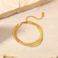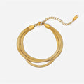 - Style: This exquisite bracelet features three intricately woven herringbone chains stacked together to create a stunning layered effect. The triple-layer design offers a distinct, eye-catching look, while the smooth, fluid texture of the herringbone links exudes elegance and grace. The bracelet connects seamlessly to a single clasp, giving it a cohesive and polished appearance. Its bold yet refined style makes it ideal for both day-to-day wear and special occasions.