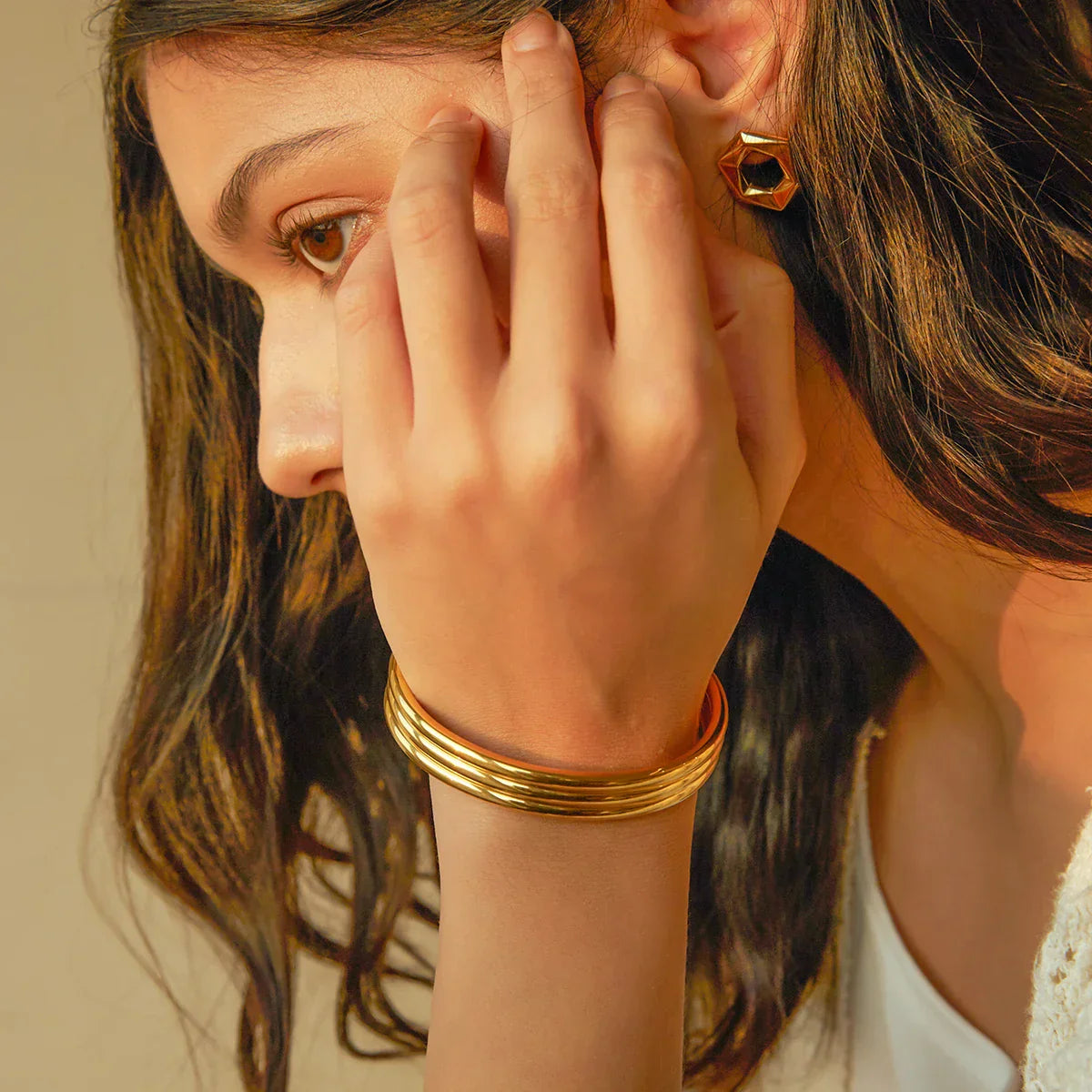 Zyrah Jewels introduces the 18k Triple Ribbed Bangle Bracelet, a timeless piece that combines classic elegance with modern minimalism. This beautifully designed bangle exudes sophistication and is perfect for those who appreciate refined, versatile jewelry.
