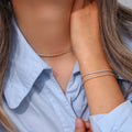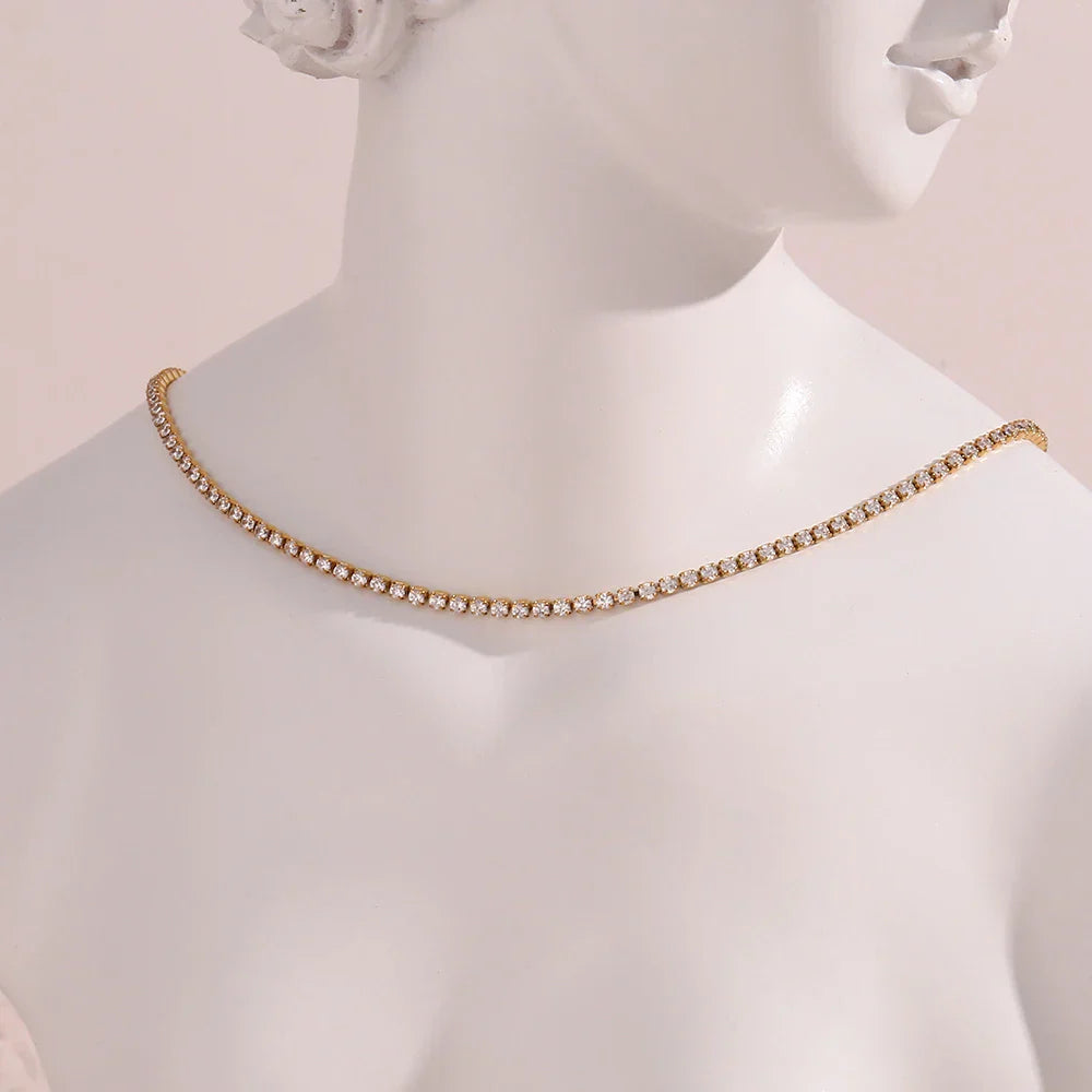 Introducing the 2mm Dainty Tennis Chain Bracelet and Necklace by Zyrah Jewels, a refined and delicate take on the classic tennis chain design. Perfect for those who appreciate timeless elegance with a modern twist.