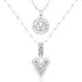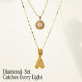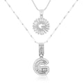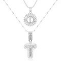 - Longer Necklace: Features a slightly thicker and more structured chain, with a larger diamond initial that creates a bold yet elegant contrast to the shorter piece. The mix of textures and sizes makes this set versatile and eye-catching.