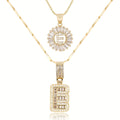 - Shorter Necklace: A dainty gold box chain with a baguette diamond circle pendant. At the center sits a delicate paved diamond initial, adding a subtle yet luxurious touch.