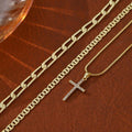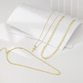 - Material: Crafted from durable stainless steel and finished in luxurious 14k gold plating, this set is built for lasting shine and elegance. The diamond accents on the cross pendant add a touch of brilliance, while the gold finish gives each piece a warm, polished glow.