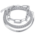 - Style: This striking bracelet set includes three standout designs: a thick paperclip chain, a wide herringbone bracelet, and a bold snake chain. Each piece offers a different texture and silhouette, making the set visually dynamic when worn together, yet versatile enough to style individually. Available in both gold and silver, the set adds a glamorous touch to everything from tailored looks to weekend wear.