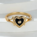 - Style: An antique-inspired design featuring a slim, simple band that splits toward the top, gracefully leading to a carved heart centerpiece. The outer edges of the heart are textured, with a colored center that holds a sparkling diamond, radiating like a miniature sun.