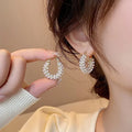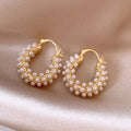 - Style: Featuring a U-shaped golden hoop design, these earrings are adorned with pearls throughout, creating a sophisticated and eye-catching look. The unique shape adds a fresh take on the classic hoop, making them both dainty yet noticeable.