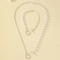 Chain & Pearl Circle Clasp Bracelet and Necklace Set