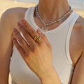The Chunky Diamond Accented Wrap Ring is a stunning fusion of modern design and classic allure. Its combination of bold structure and delicate diamond detailing makes it a versatile accessory, equally perfect for making a statement or adding a refined touch of glamour to your everyday ensemble.