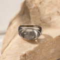 - Style: This classic ring features a striking chunky band design that draws attention to its beautifully set circular oval stone. The clean, rounded lines of the band create a harmonious balance with the smooth oval gemstone, making it a standout accessory that effortlessly catches the eye. Its minimal yet bold aesthetic makes it perfect for adding a touch of sophistication to any ensemble.