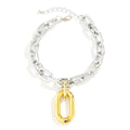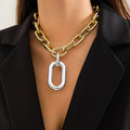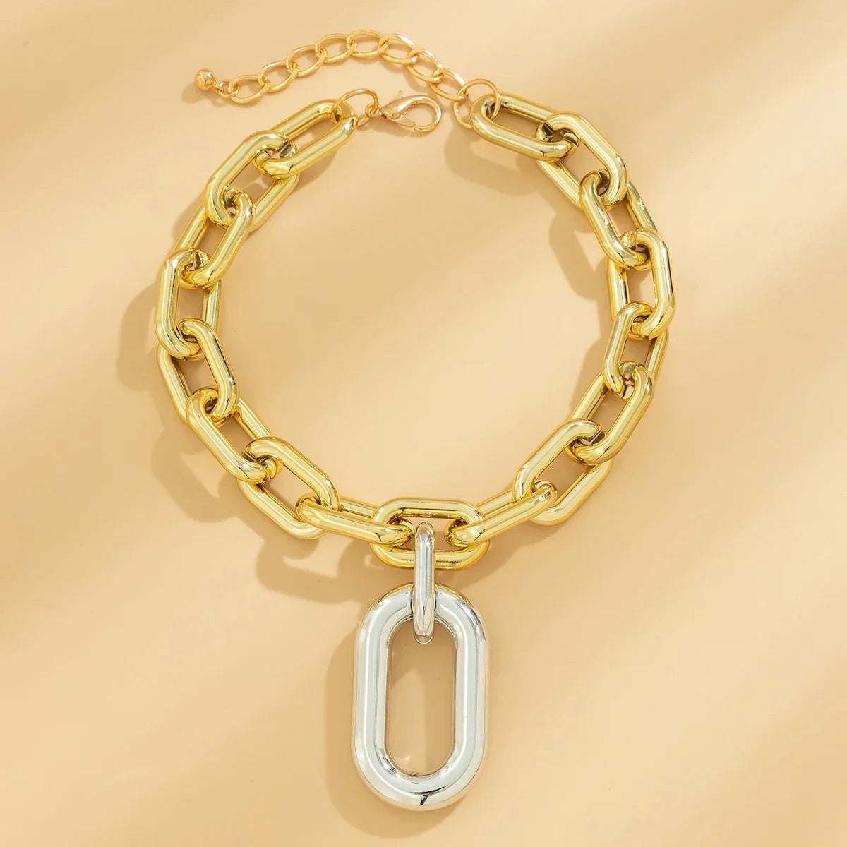 - Style: This necklace features a very chunky and thick paperclip chain design, offering a bold, modern aesthetic. The pendant adds an extra layer of contrast with an opposite color link dangling below, creating an eye-catching two-tone effect. Available in gold with a silver pendant or silver with a gold pendant for a dynamic, stylish look.