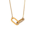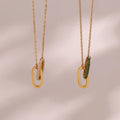- Style: This dainty gold necklace features a unique paperclip link design, symbolizing unity and connection. The pendant showcases two interconnected links: one in polished gold and the other accented with sparkling diamonds for a bold yet refined contrast. This subtle yet striking piece is available in white or green, offering a touch of color and versatility.