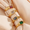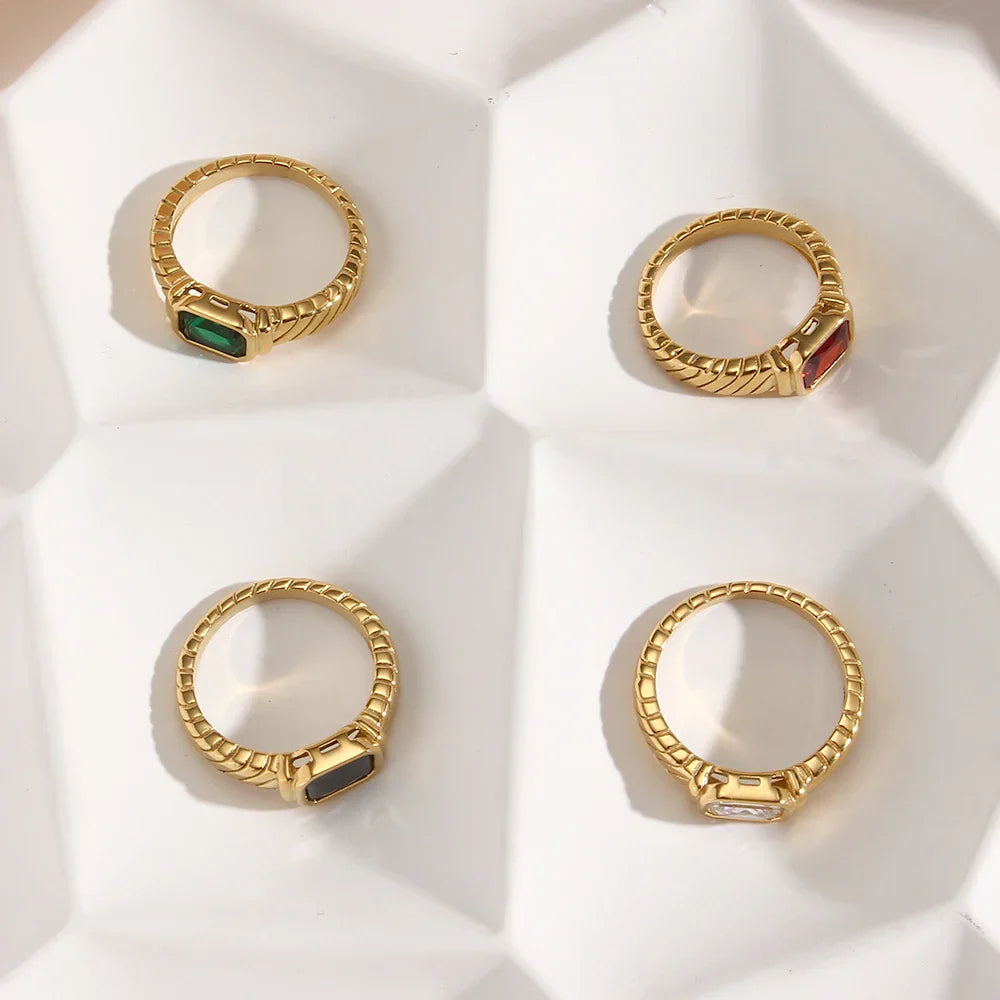 - Style: This thin yet wide gold band features a striking cross-striped textured design that adds a unique visual depth. The centerpiece is a dazzling baguette diamond, available in a variety of colors—white, black, red, or green—allowing you to personalize your ring with your favorite hue.