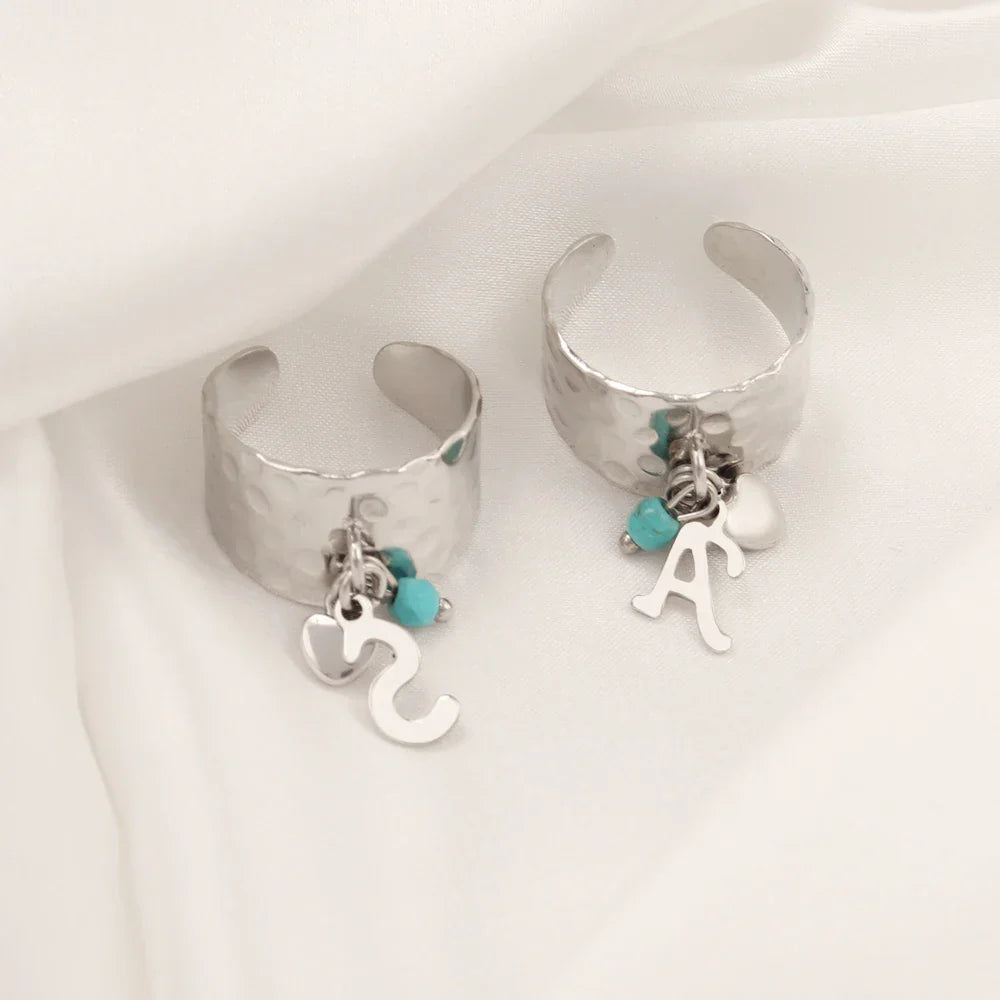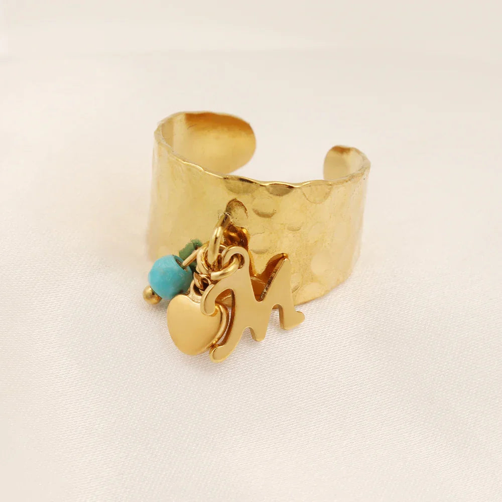 - Style: Features a textured ring with an open bottom for an adjustable fit, adorned with a dainty bubble heart charm and a personalized initial letter, adding a touch of individuality and grace.