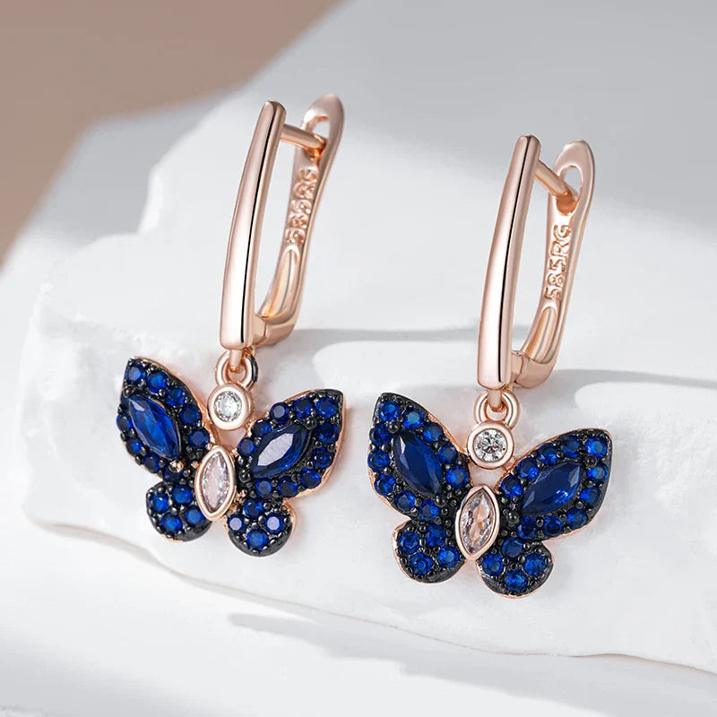 Dainty Blue Diamond Butterfly Earrings