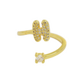 - Style: This gorgeous gold wrap ring features a dainty diamond on one end and a bold bubble-style initial fully covered in diamonds on the other. The open design allows the elements to face each other, creating a balanced, eye-catching look that’s perfect for stacking or wearing solo.