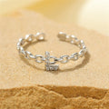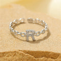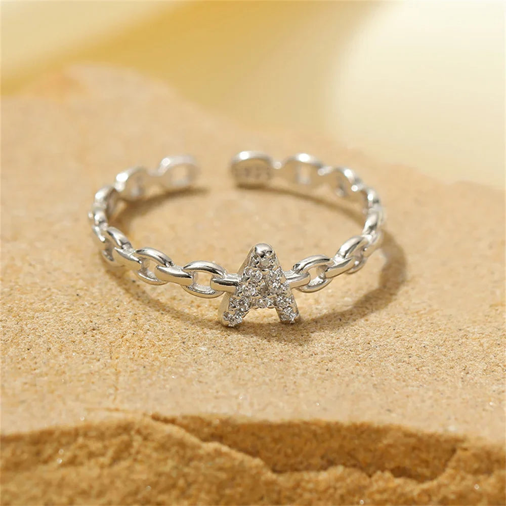 - Style: This elegant ring features a thin paperclip-style band, giving it a modern and minimal aesthetic. The highlight is a dainty diamond-encrusted initial that adds a refined sparkle to the design. With its adjustable, open-ended style, it can be resized to fit comfortably on any finger, making it as practical as it is beautiful.
