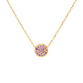 - Style: This elegant necklace features a thin, dainty chain with a small circle pendant. The pendant is beautifully encrusted with tiny diamonds that create a dazzling effect, each representing a unique birthstone, adding a personalized touch to this minimalist design. The subtle shimmer of the birthstone diamonds makes it a timeless and sophisticated piece.