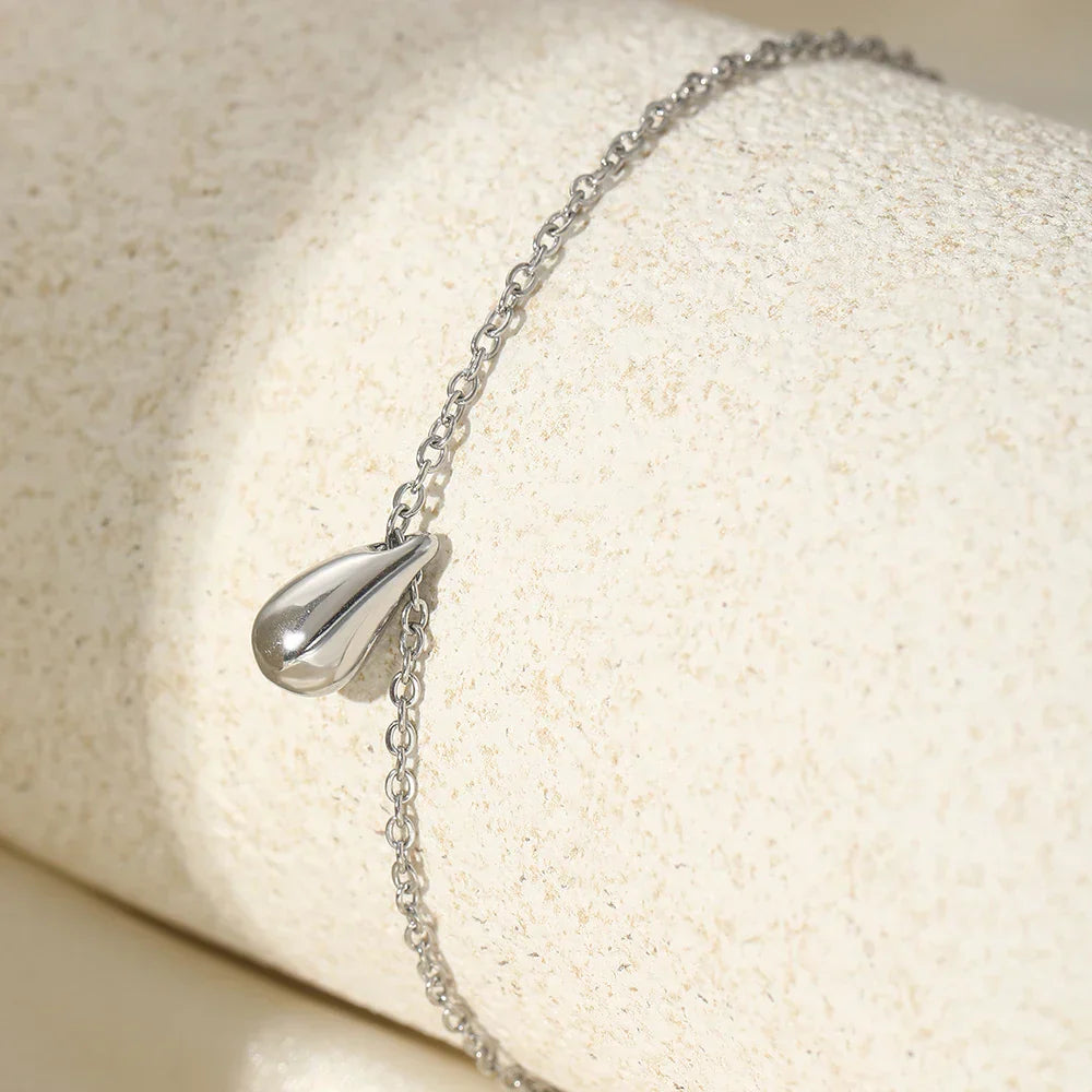- Style: This delicate bracelet features a thin chain with a simple yet elegant droplet design at the center, offering a refined and graceful appearance that complements any outfit.