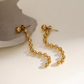 - Style: These stunning earrings feature a series of polished golden beads arranged in a cascading tassel design, creating a graceful movement that captures the light with every turn. The beaded tassels hang delicately from a classic stud base, making them the perfect accessory to add a touch of glamour to both day and evening wear.