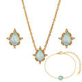 The Dainty Iridescent Opal Necklace, Bracelet, and Earrings Set brings together the ethereal beauty of opal with a touch of diamond sparkle, making it a timeless and elegant choice for any occasion.