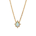 - Style: Each piece in this set features a dainty gold chain adorned with a droplet-cut iridescent opal stone. The stone is elegantly held in place by a diamond-accented harness, adding a luxurious sparkle to the design. The necklace and bracelet share the same delicate design, while the earrings showcase the opal in a simple, stunning stud format.