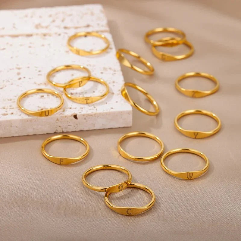 Dainty Thin Letter Initial Ring