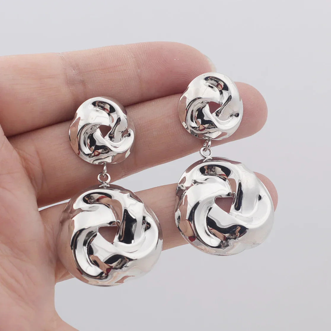 - Style: These earrings feature a stacked spiral twist design, resembling a pretzel shape, with a smaller twist at the top and a larger twist at the bottom. The playful, cascading structure dangles elegantly, creating a dynamic movement that catches the eye and adds a sophisticated yet edgy look to your style.